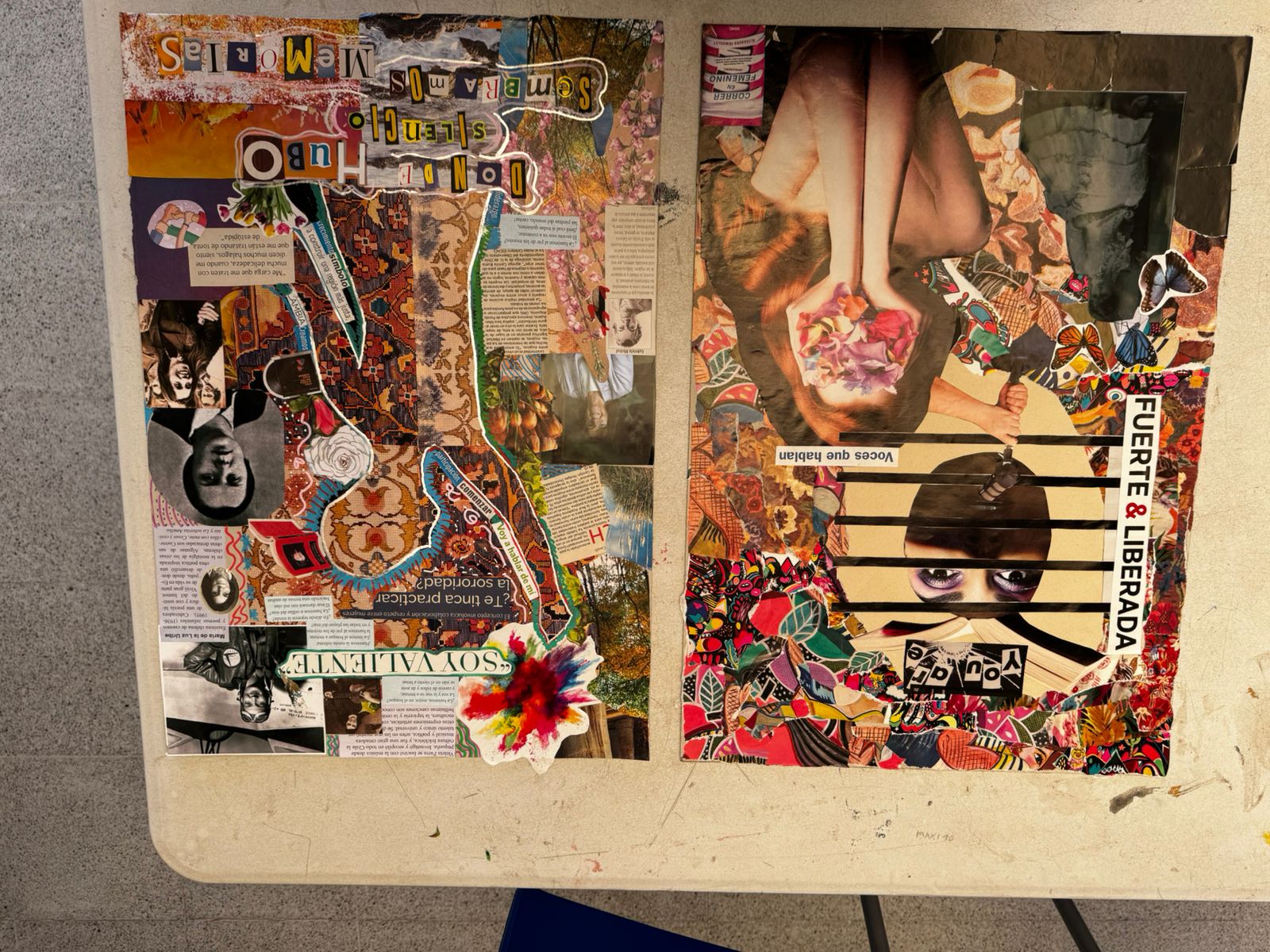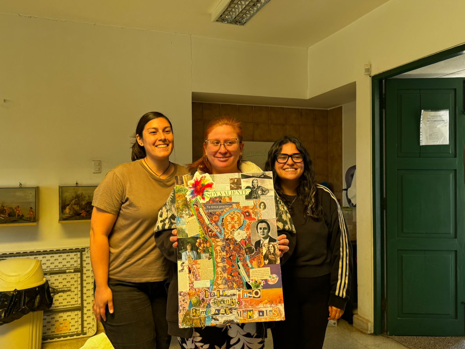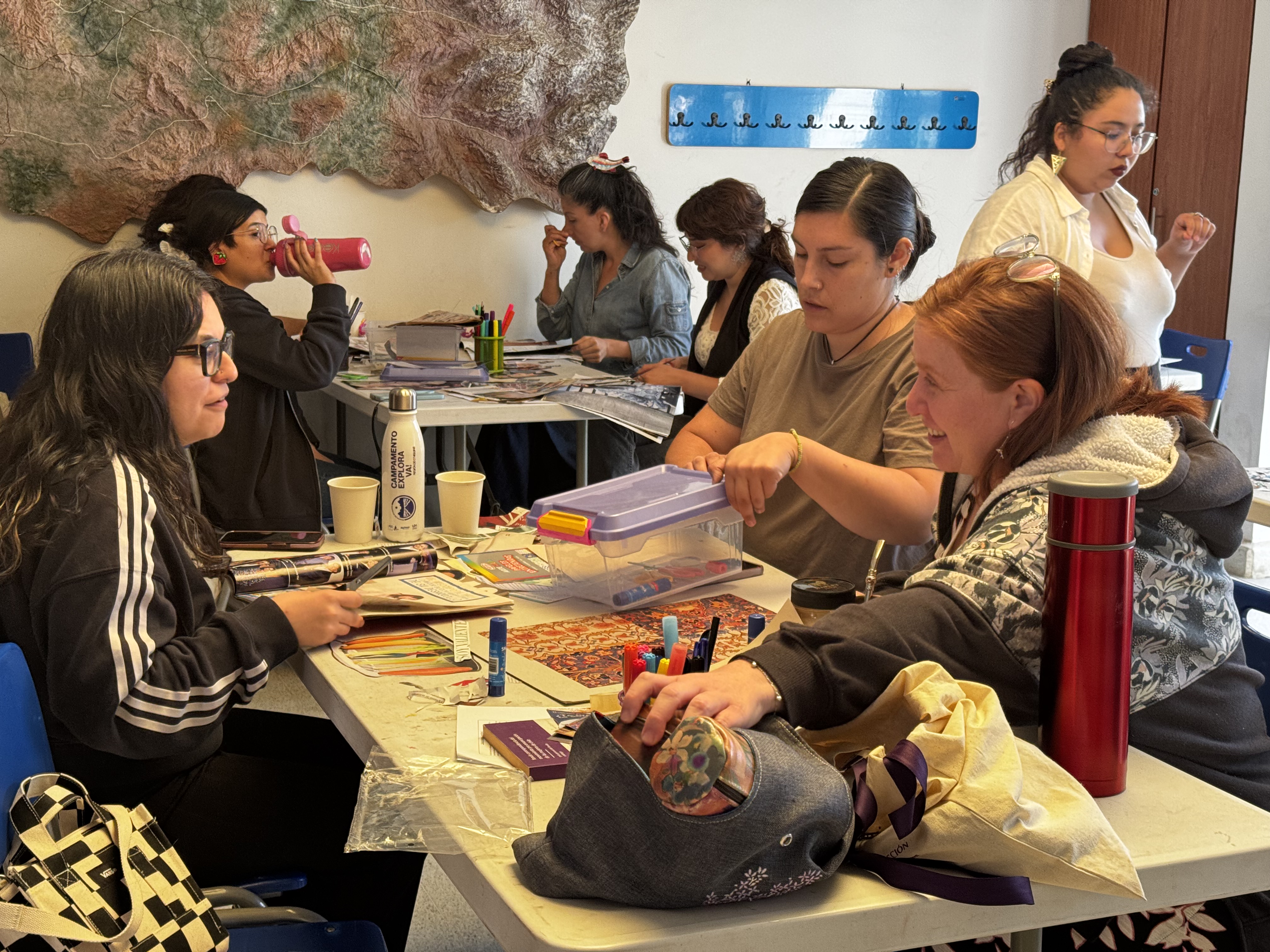 Posteriormente, se desarrolló el espacio de mediación artística, el cual contempló un taller de creación mediante la técnica del collage, promoviendo el diálogo, la expresión creativa y la apropiación comunitaria de los contenidos abordados. Durante la actividad, se incentivó la reflexión en torno a conceptos como la violencia simbólica y la invisibilización histórica de las mujeres en el espacio público.