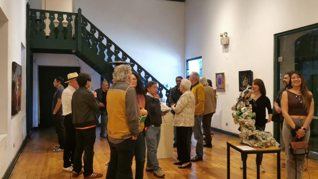 Artistas y personas invitadas a la Inauguración de Arte, vino y territorio en el Salón de la Casa del Pilar del Museo Regional de Rancagua.