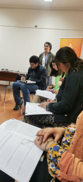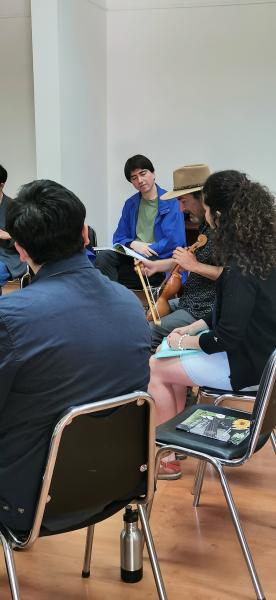 El taller, a través de una metodología participativa, permitió que todas las personas asistentes pudieran manifestar su interés en la temática, así como conocimiento en torno al Canto a lo Poeta. Rodrigo Nuñez se acompañó de su rabel para ir dialogando a través de décimas en torno al oficio del Canto a lo Poeta, su historia, sus diferentes ramas, para finalizar en un bello ejercicio que hizo a todos los participantes experimentar la creación de una décima con versos octógonos, algunas de las cuales fueron musicalizadas al finalizar el taller.